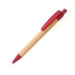 Bambusové telo pera s doplnkami z plastu s podielom slamy. Náplň modro píšuca veľkoobsahová. Farba červená.| Vlastnosti produktu | |