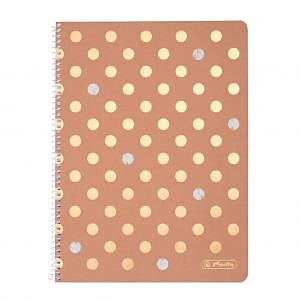 Poznámkový blok Pure Glam formátu A4 má zaoblené rohy, zaoblenú špirálu, eurodierovanie a mikroperforáciu. Papier 70 g / m2, dosky so vzhľadom hrubého papiera s reliéfom zlatých a bielych bodiek, jednoduchá biela špirála.| Vlastnosti produktu | |