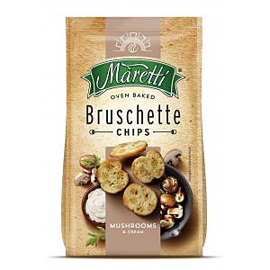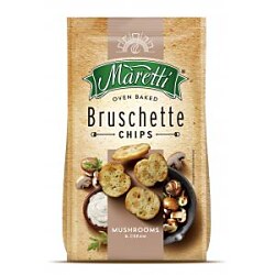 PŠENIČNÁ múka, Rastlinný olej (palmový oleín, antioxidant: extrakty z rozmarínu), Extrudovaná kukuričná múka, Ochucujúca zložka z: huby a smotana 5,5% ( maltodextrín, zvýrazňovače chuti: glutaman sodný, guanylan disodný, inozínan disodný; jedlá soľ, cesnakový prášok, sušená SMOTANA 1,1%, protihrudkujúca látka: oxid kremičitý; koncentrovaná hubová šťava 0,36%; Stabilizátor: guarová guma; Dextróza, Emulgátor: estery mono- a diglyceridov mastných kyselín s kyselinou mono- a diacetylvínnou.