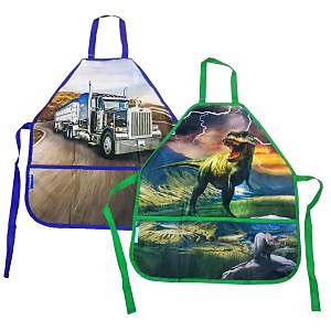 Detská zástera na maliarske a tvorivé potreby, 2 rôzne vzory, veľké predné vrecko s 3 vreckami na maliarske a tvorivé potreby, zapínanie na suchý zips pri krku a zaväzovanie vzadu, vrátane menovky, materiál polyester, univerzálna veľkosť 54x46cm| Vlastnosti produktu | |