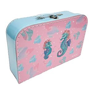 Papierový kufrík na školské pomôcky, lesklý, s vnútornou grafikou, kovové zatváranie. Rozmery: 35 × 23 × 10 cm. Motív: Morský koník.| Vlastnosti produktu | |
