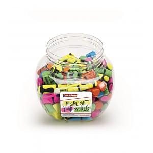 Displej 100 kusov mini zvýrazňovačov edding so zrezaným hrotom so šírkou stopy 1 - 3 mm. Neónový pigment s maximálnym jasom, protišmyková ergonomická rukoväť. Uzáver s klipom.| Vlastnosti produktu | |