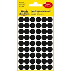Kruhové etikety na ručný popis. Priemer 12 mm, v balení 270 etikiet. Farba čierna.| Vlastnosti produktu | |