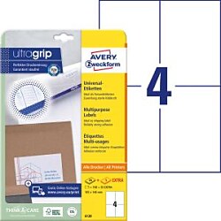 Biele univerzálne etikety vhodné na každodenné použitie v atramentových a laserových tlačiarňach a kopírovacích strojoch. Vďaka inovatívnej technológie ultragrip sa môžete spoľahnúť na bezchybné natiahnutie archu a tlač bez zasekávania. Bezpečnostný okraj QCT zabraňuje zanášaniu tlačiarne lepidlom. Pre laserové tlačiarne testované| Vlastnosti produktu | |