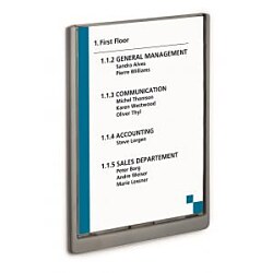 Moderná informačná tabuľka na dvere s lemom v atraktívnej grafitovej farbe. Predný panel sa otvára na jedno zatlačenie, a tým sa jednoducho sprístupnia vložené popisné papiere, ktoré sa môžu vymieňať podľa potrieb. Tabuľka je ideálna do kancelárií, úradov, škôl, univerzít a hotelov. Súčasťou balenia je montážna sada s názorným návodom. Namiesto pevného montovania môže byť tabuľka k povrchu aj prilepená.| Vlastnosti produktu | |