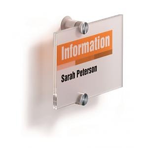 Tabuľka na dvere z novej rady v elegantnom, atraktívnom, a zároveň jednoduchom dizajne. Dodávaná s 2 polopriehľadnými vnútornými listami, vhodnými na farebnú alebo čiernu potlač. Listy sa vložia medzi akrylové panely tabuľky a tabuľka sa prichytí k stene alebo dverám 2 veľkými hliníkovými skrutkami. Ľahká montáž, názorný návod je priložený.| Vlastnosti produktu | |