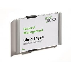 Informačná tabuľka na dvere. Štylizovaná tabuľka vo vrúbkovanej úprave, spodná časť z vysoko kvalitného hliníka, fixujúce spojky v čiernej farbe. K podkladu môže byť zadnou časťou priskrutkovaná alebo nalepená. Text je chránený neoslňujúcim akrylátovým krytom, ktorý pridržiavajú dve fixujúce spojky. Súčasťou balenia je montážna sada s názorným návodom a čistým listom papiera vo veľkosti tabuľky.| Vlastnosti produktu | |