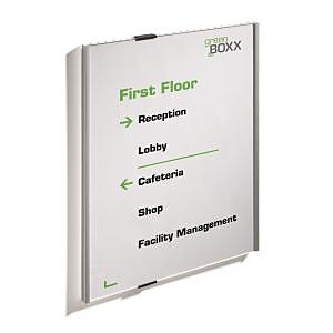 Informačná tabuľka na dvere. Štylizovaná tabuľka vo vrúbkovanej úprave, spodná časť z vysoko kvalitného hliníka, fixujúce spojky v čiernej farbe. K podkladu môže byť zadnou časťou priskrutkovaná alebo nalepená. Text je chránený neoslňujúcim akrylátovým krytom, ktorý pridržiavajú dve fixujúce spojky. Súčasťou balenia je montážna sada s názorným návodom a čistým listom papiera vo veľkosti tabuľky.| Vlastnosti produktu | |