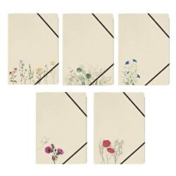Kartónový obal na dokumenty formátu A4, materiál: trávová lepenka 300 g/m², 5 rôznych prírodných motívov, s čiernou gumičkou v rohoch na zapínanie, s 3 chlopňami na zhromažďovanie a prepravu voľných dokumentov, aj v menších formátoch.| Vlastnosti produktu | |