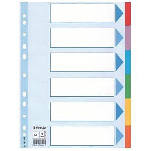 Celofarebný rozraďovač Esselte vyrobený z kartónu v rôznych farbách. Formát A4, eurodierovanie, popisovateľný titulný list na jasnú identifikáciu obsahu. Balenie jedna sada v polyesterovom sáčku. Väčšie balenie 20 sád.| Vlastnosti produktu | |