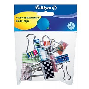 Klipy na dokumenty farebné. Balenie 12 ks v sáčku na zips, obsahuje klipy so šírkou 19 mm (4 ks), 25 mm (4 ks) a 32 mm (4 ks).| Vlastnosti produktu | |