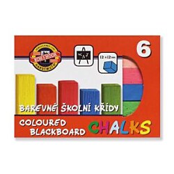 Farebné kriedy na školské tabule. Rozmery 12 x 12 x 100 mm. Dodávané v sade 6 farieb (žltá, oranžová, karmínová, tmavomodrá, tmavozelená, hnedá). Väčšie balenie 40 sád.| Vlastnosti produktu | |