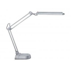 Lampa so základňou energeticky úspornej triedy „A“ s LED žiarovkami so životnosťou cez 20 000 hodín bez možnosti ich výmeny. Svietivosť 2 000 luxov pri vzdialenosti 35 cm od stola, svetelný tok 400 lumenov, extrémne nízka spotreba energie cca 9 kWh/ 1 000 h. Sklopná a otočná plastová svetelná hlava. Veľkosť hlavy cca 33 × 7 cm, stabilný podstavec 22 × 14,5 cm so závažím. Materiál kov a plast. Dĺžka spodného ramena 33 cm, horného 34 cm, výška normálnej pracovnej pozície 45 cm, dĺžka kábla 1,8 m. Farba strieborná.| Vlastnosti produktu | |