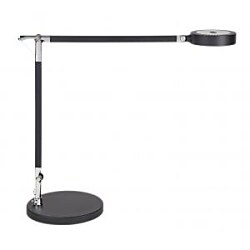 Atraktívna dizajnová stolná lampa energeticky úspornej triedy „A“ (spektrá A++ - E) s najnovšou technológiou LED. 24 LED žiaroviek s teplým bielym svetlom (3 000 °K) a 24 LED žiaroviek s bielym denným svetlom (6 000 °K) so životnosťou cez 20 000 hodín bez možnosti ich výmeny. Pohodlné ovládacie tlačidlá s dotykovou funkciou na hlavici s plynulým nastavením teploty farby, nastavenie osvetlenia pomocou stmievača v 4 krokoch. Svietivosť lampy 1 400 lx pri vzdialenosti 35 cm od stola, svetelný tok 300 lúmenov, nízka spotreba energie 6 kWh / 1 000 h. Plastová hlavica priemeru 11,6 cm s hliníkovou vložkou sa dá ľahko otočiť a nakloniť, stabilná základňa priemeru 20,5 cm má závažie a podložku na ochranu stola. Dĺžka brúsených eloxovaných hliníkových ramien 36,5 cm, výška normálnej pracovnej pozície 44 cm. Farba čierna.| Vlastnosti produktu | |