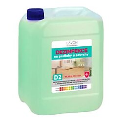 Dezinfekčný prostriedok LAVON na podlahy a povrchy D2 je biocídny čistiaci prípravok s vysokou penivosťou do potravinárstva, priemyslu, domácností a verejných priestorov. Určený na dezinfekciu a čistenie všetkých druhov podláh a nenasiakavých povrchov. Vysoká čistiaca a odmasťovacia účinnosť, vhodný aj na umývanie riadu. Likviduje baktérie a obalené vírusy: OTESTOVANÉ podľa STN EN 1276:2020, STN EN 14476+A2:2020.