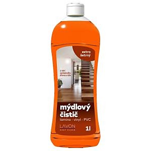 LAVON mydlový čistič  je účinný prostriedok s obsahom mydla na dokonalé čistenie bez šmúh. Je vhodný na podlahy a umývateľné povrchy: lamino, vinyl, PVC, linoleum, dlažba, mramor...apod. Jemná vôňa santalového dreva a ruže príjemne prevonia všetky priestory.