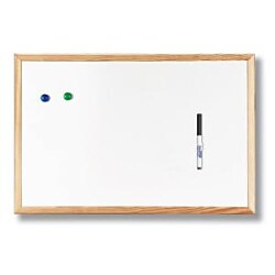 Biela magnetická popisovateľná tabuľa so svetlým dreveným rámom.| Vlastnosti produktu | |
