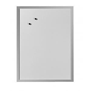 Biela magnetická popisovateľná tabuľa so sivým dreveným rámom. Rozmery: 40x60 cm. Úprava: magnetická.| Vlastnosti produktu | |