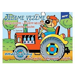 Maľovanky rozmerov A5 .Ideme, vezieme. Nájdete tu 8 obrázkov (cisterna, bager, traktor, odťahovka, hasičské auto, mašinka, loď, monster truck). Urobte si pohodové popoludnie s deťmi a vyfarbite si obrázok. Deti sa naučia spoznávať pracovné stroje, ale aj sa zabavia. Tieto omaľovánky sú jednoduché s veľkými obrázkami, teda vhodné aj pre tie najmenšie deti. Vyfarbovanie obrázkov pomôže rozvíjať množstvo schopností a zručností, najmä má veľký vplyv na jemnú motoriku ruky.| Vlastnosti produktu | |