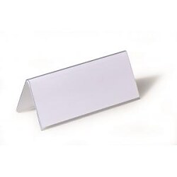 Obojstranne čitateľná stolová menovka z pevného PVC, vhodná na konferencie, recepčné pulty, ceny tovarov a popis produktov. Dodávaná s vymeniteľnou prázdnou kartou. Väčšie balenie 25 ks.| Vlastnosti produktu | |