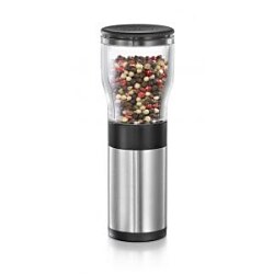 Moderný ručný mlynček na lorenie z prvotriednej nehrdzavejúcej ocele a odolného plastu na dochucovanie pokrmov počas varenia a pri stolovaní. Môžete ho odkladať ľubovoľnou stranou dole, čo oceníte hlavne pri intenzívnom používaní počas varenia. Vybavený kvalitným mlecím mechanizmom zo špeciálne tvrdenej keramiky s nastaviteľnou hrúbkou mletia a viečkom na zachytávanie zvyškov korenia. Výška 16 cm, priemer 5,5 cm. 3 roky záruka.| Vlastnosti produktu | |