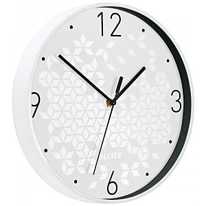 Quartz hodiny z produktového radu Leitz WOW. Tichý chod, dvojfarebný rám z pevného plastu v kombinácii so sklenenou prednou stranou. Jasný ciferník vo WOW farbách s veľkými číslicami, tri kontrastné ručičky viditeľné aj z diaľky. Priemer 29 cm, hrúbka 4,3 cm. Batéria AA nie je súčasťou balenia. Farba biela.| Vlastnosti produktu | |