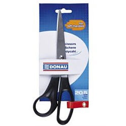 Kancelárske nožnice pre ľavákov na strihanie papiera, kartónu, lepenky, samolepiacej pásky a pod. s pogumovaným úchytom a strihacou časťou z nehrdzavejúcej ocele. Farba čierna.| Vlastnosti produktu | |