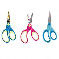 Guľaté detské nožnice Design - farebné, pre ľavákov, ergonomické držanie. Mix farieb.| Vlastnosti produktu | |