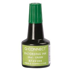 Q-Connect univerzálna pečiatková farba bezolejová, vhodná na gumené a samofarbiace pečiatky. Objem 28 mℓ. Väčšie balenie 10 ks. Farba zelená.| Vlastnosti produktu | |