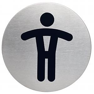 Piktogram na vysoko kvalitnej brúsenej nehrdzavejúcej oceli. Vytlačený symbol je odolný voči poškriabaniu a silnému opotrebeniu. Priemer 83 mm, vďaka lepiacej páske na zadnej strane sa piktogram dá použiť na rôzne povrchy. Farba strieborná, potlač čierna.| Vlastnosti produktu | |