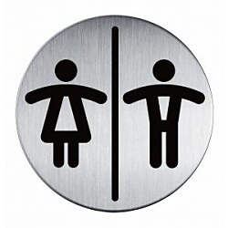 Piktogram na vysoko kvalitnej brúsenej nehrdzavejúcej oceli. Vytlačený symbol je odolný voči poškriabaniu a silnému opotrebeniu. Priemer 83 mm, vďaka lepiacej páske na zadnej strane sa piktogram dá použiť na rôzne povrchy. Farba strieborná, potlač čierna.| Vlastnosti produktu | |