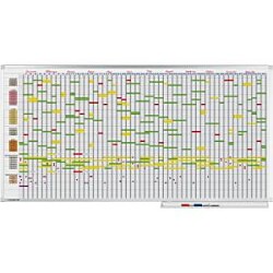 Ročný plánovač série PROFESSIONAL s oddielmi 7dňových týždňov a sieťou 365 dní. Zvlášť výhodné pre plány, ktoré počítajú aj s víkendami. Víkendy vytieňované v sivej farbe. Vhodné pre 75 ľudí/ udalostí. Plánovač obsahuje pásiky s názvami mesiacov v troch jazykoch, pásiky s kalendárom, číslami týždňov 1 - 53 a číslami dní (1 - 7). Užívateľ si pásiky upevňuje sám, takže plánovanie možno začať ľubovoľným mesiacom. Veľkosť denného okna 12 × 5 mm. Rozmery 100 × 200 cm. Vhodným doplnkom je dátumová čiara, ktorá je nastaviteľnej dĺžky, ľahko sa posúva a na plánovači vyznačuje aktuálny dátum. Vhodná pre všetky tabule Professional.| Vlastnosti produktu | |