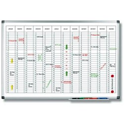 Tabuľa s popisovateľným magnetickým a špeciálne lakovaným a UV tvrdeným povrchom vo verzii ročného plánovača s názvami mesiacov v hornom riadku (`diárový` štýl). Ideálna ako `personálny` plánovač. Magnetický povrch. Sada príslušenstva zahŕňa 4 stierateľné popisovače TZ 111 a 10 mm magnetické symboly.| Vlastnosti produktu | |