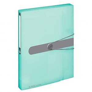 Box z polypropylénu Pastell na dokumenty formátu A4. Kapacita 400 listov, šírka chrbta 4 cm. Zatváranie sivou gumičkou o sivý plastový krúžok, nalepený chrbtový štítok na popis obsahu. Väčšie balenie 10 ks. Farba priehľadná mätová.| Vlastnosti produktu | |