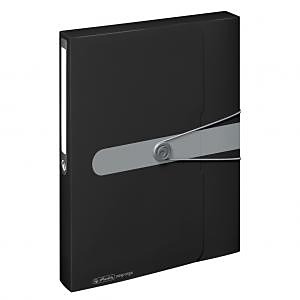 Box z polypropylénu Easy Orga na dokumenty formátu A4. Kapacita 400 listov, šírka chrbta 4 cm. Zatváranie sivou gumičkou o sivý plastový krúžok, nalepený chrbtový štítok na popis obsahu. Väčšie balenie 10 ks. Farba čierna.| Vlastnosti produktu | |