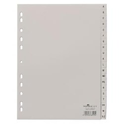 Abecedný rozraďovač z polypropylénu. Formát A4, euro-dierovanie. Balenie jedna sada v polyesterovom sáčku. Väčšie balenie 20 sád. Farba sivá.| Vlastnosti produktu | |