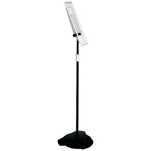 Podlahový statív na 10 panelov s pevným oceľovým podstavcom. Nastaviteľná výška 61 až 110 cm a uhol sklonu od 5 do 90 stupňov. Dodávaný bez katalógových panelov. Hmotnosť 4,9.kg. Farba antracitová/sivá| Vlastnosti produktu | |