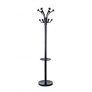 Robustný oceľový vešiak na kabáty sa hodí do každého prostredia. Ťažký betónový podklad potiahnutý plastom zabezpečuje jeho mimoriadnu stabilitu. Matný povrch odolný proti poškriabaniu dáždnikom, lesklý stĺpik, 6 vešiakov na klobúky, 6 na kabáty s priskrutkovanými hrotmi z odolného ABS plastu, 4 prídavné plastové háčiky pod vešiakmi a 4 háčiky na stojane na dáždniky, stojan priemeru 27 cm až na 8 dáždnikov alebo 4 teleskopické dáždniky. Výška 176 cm, priemer základne 36,5 cm, váha 6 kg. Rýchla a jednoduchá montáž. Farba čierna.| Vlastnosti produktu | |