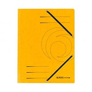 Obal A4 s tromi chlopňami a dvomi gumičkami čiernej farby. Materiál prešpánový kartón gramáže 355 g / m². Väčšie balenie 25 ks. Farba žltá.| Vlastnosti produktu | |