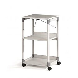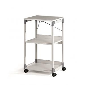 Mobilný projekčný vozík s tromi policami. Horná polica je odnímateľná a pri projekcii sa dá naklopiť do 180°, stredná polica je výškovo nastaviteľná po 32 mm, spodná polica je fixná. Hrúbka políc 19 mm. Materiál pevný kovový lakovaný rám s rohovými spojkami z plastu. Farba sivá. Rozmery š × v × h 508 x 882 x 432 mm.| Vlastnosti produktu | |