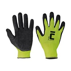Bezšvové pletené rukavice zo syntetických priadzí, na dlani a prstoch povrstvené latexom.| Vlastnosti produktu | |