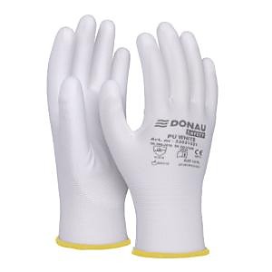 rukavice z kvalitného polyesterového úpletu v bielej farbe, v oblasti úchopu potiahnuté bielym polyuretánom| Vlastnosti produktu | |