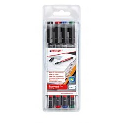Permanentný popisovač s vysoko nepriehľadným atramentom, vhodný na popisovanie priesvitných fólií na spätnú projekciu, sklo a umelú hmotu. Vodeodolný, zmazateľný iba liehom. Hrot okrúhly, šírka stopy 0,6 mm. Sada 4 ks.| Vlastnosti produktu | |