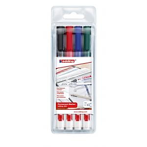 Permanentný popisovač vhodný na popisovanie, značenie a vyznačovanie takmer na všetky materiály vrátane kovu, skla a umelých hmôt. Plastový obal. Dopĺňateľný atramentom edding T 25. Okrúhly hrot, šírka stopy 1 mm. Dodávané v sade 4 ks.| Vlastnosti produktu | |