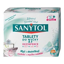 Tablety do umývačky riadu 4 v 1 kombinujú zároveň dezinfekciu, umývanie, soľ a lesk. Ich jedinečné zloženie tak zaisťuje optimálnu čistotu riadu (bez predplachovania) a umývačky aj pri krátkych programoch a umývaní pri nízkej teplote. Biocídny prípravok používajte bezpečne. Pred použitím si vždy prečítajte údaje na obale a pripojené informácie o prípravku.