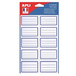 Vrecúško so 120 školskými štítkami s modrými rámikmi a čiarami. Veľkosť: 36 x 56 mm. Lepidlo: permanentné. Menovky na nalepenie na zošity, diáre, knihy...| Vlastnosti produktu | |