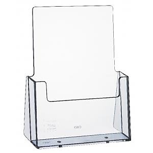 Stojan na prospekty formátu A5 s jedným oddielom. Materiál priehľadný číry plast. Rozmery: (š x v x h) 165 x 180 x 78 mm.| Vlastnosti produktu | |
