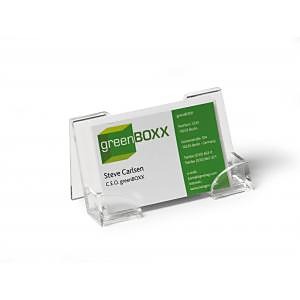 Jednoduchý a zároveň štýlový stolový stojan na vizitky. Dodávaný so samolepiacimi protišmykovými podložkami. Kapacita 50 vizitiek maximálnej šírky 100 mm. Farba číra.| Vlastnosti produktu | |