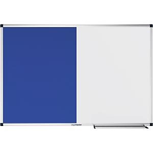 Priestorovo úsporná dvojfunkčná doska na písanie a pripínanie. Hladké písanie a výkon suchého vymazávania. Jednoduché pripevnenie poznámok, náčrtov a fotografií pomocou magnetov a špendlíkov. Jednoduchá skrytá montáž na stenu. 5 ročná záruka na dokonalú popisovateľnosť a stierateľnosť povrchu dosky pri použití v kombinácii s príslušenstvom Legamaster. Tento produkt je vyrobený z materiálu z dobre obhospodarovaných lesov s certifikátom FSC® a iných kontrolovaných zdrojov (FSC C158462). Funkčná tabuľa a nástenná tabuľa na príležitostné použitie v kancelárii alebo domácej kancelárii. Jedna polovica: Magnetická lakovaná oceľová tabuľa vhodná na popisovanie za sucha stierateľnými popisovačmi na tabuľu. Druhá polovica: Nástenka s plsteným povrchom. Hliníkový rám so sivými plastovými rohovými krytmi (Pantone 433C). Možno namontovať horizontálne alebo vertikálne. Zásobník na popisovace (30 cm) s koncovými krytmi, montážna sada a montážny návod sú súčasťou balenia.| Vlastnosti produktu | |