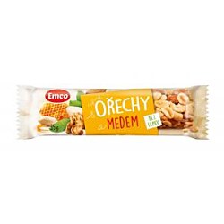 Skvelá orechová tyčinka Emco s medom, vhodná na vaše cesty, či už do práce, školy či na výlet. Neobsahuje lepok, hrozienka a palmový tuk. Hmotnosť 35 g.